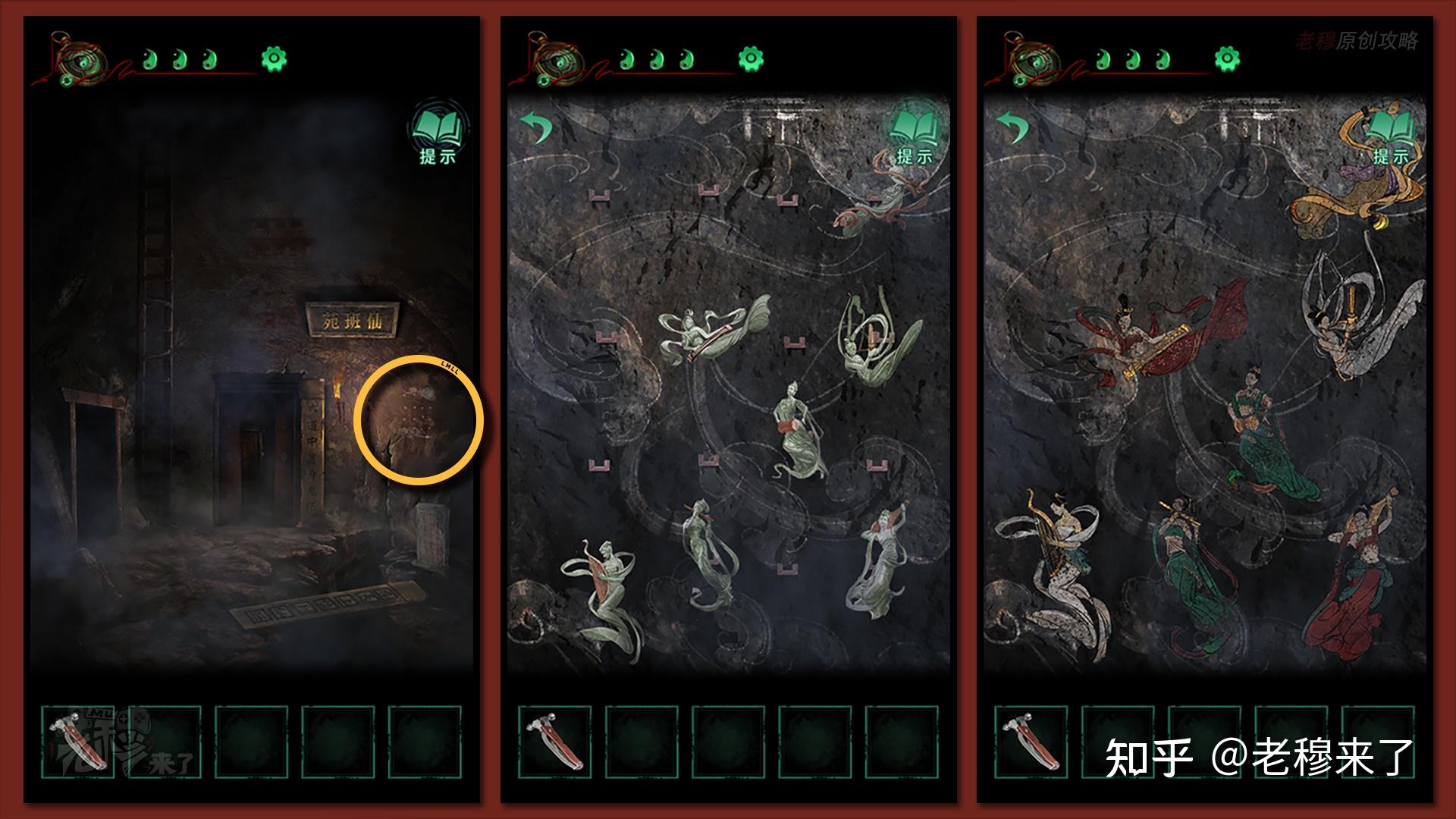 【男主视角】:转换到男主视角,察看【仙班苑】右侧是的墙面,按照【山公雕像】一侧的册本最初一页的内容,调整仙女的位置,调整后,仙女酿成壁画,那里需要记住颜色