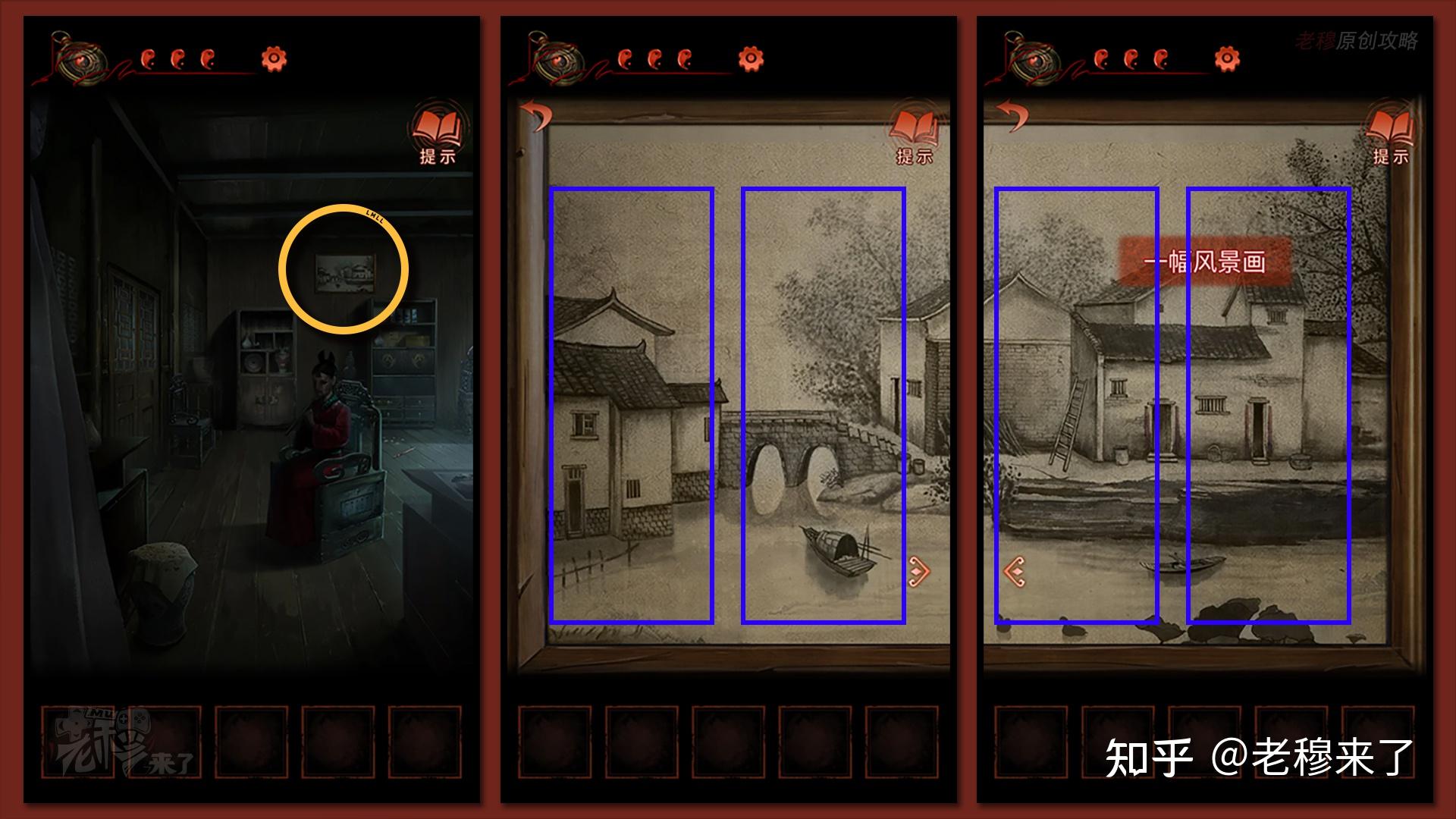 女主逃到老宅,察看墙上的【挂画】,摆布滑动能够看到全图