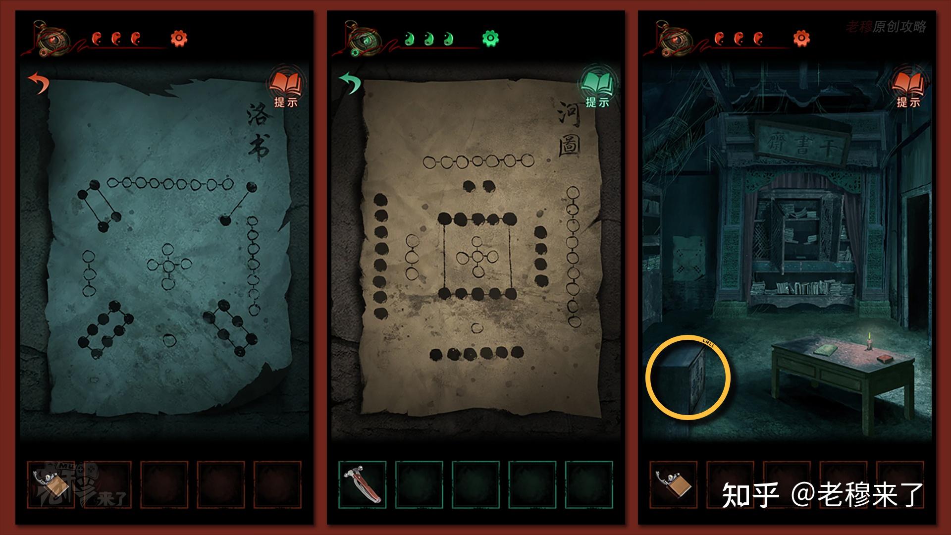 【女主视角】:解锁匣子的密码其实就是合理的数【河图】和【洛书】上的圆圈的数量按照线索【上为北,下为南,白为阳,黑为阴】