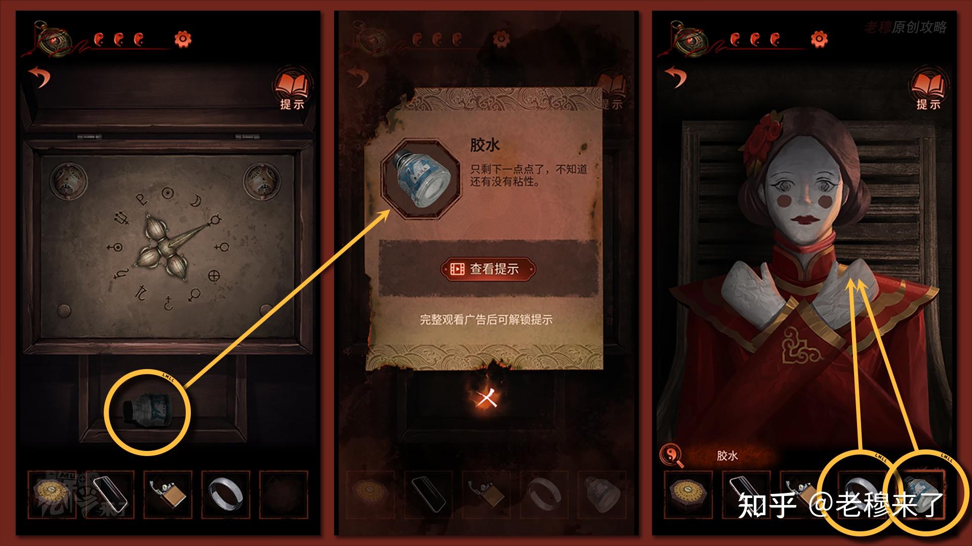 扭转匣子的指针,拾取【胶水】,回到纸新娘房间用【胶水】和【戒指】粘到纸新娘的手上