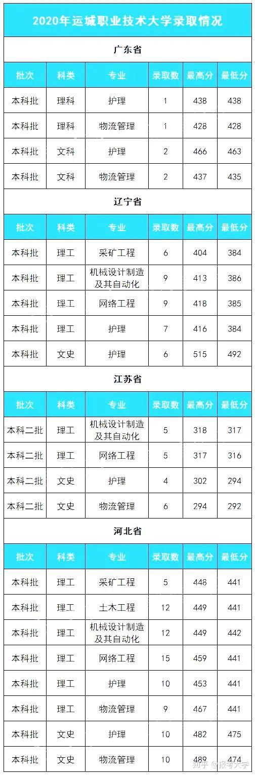 2020年运城职业手艺DX在辽宁S的登科更低分为:理科384分文科492分,且文科仅招护理专业,理科超25分,文科超20分。
