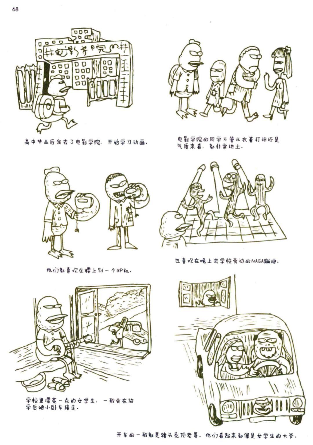 好比那个连环画,讲的就是他片子学院同窗的故事,还挺挖苦: