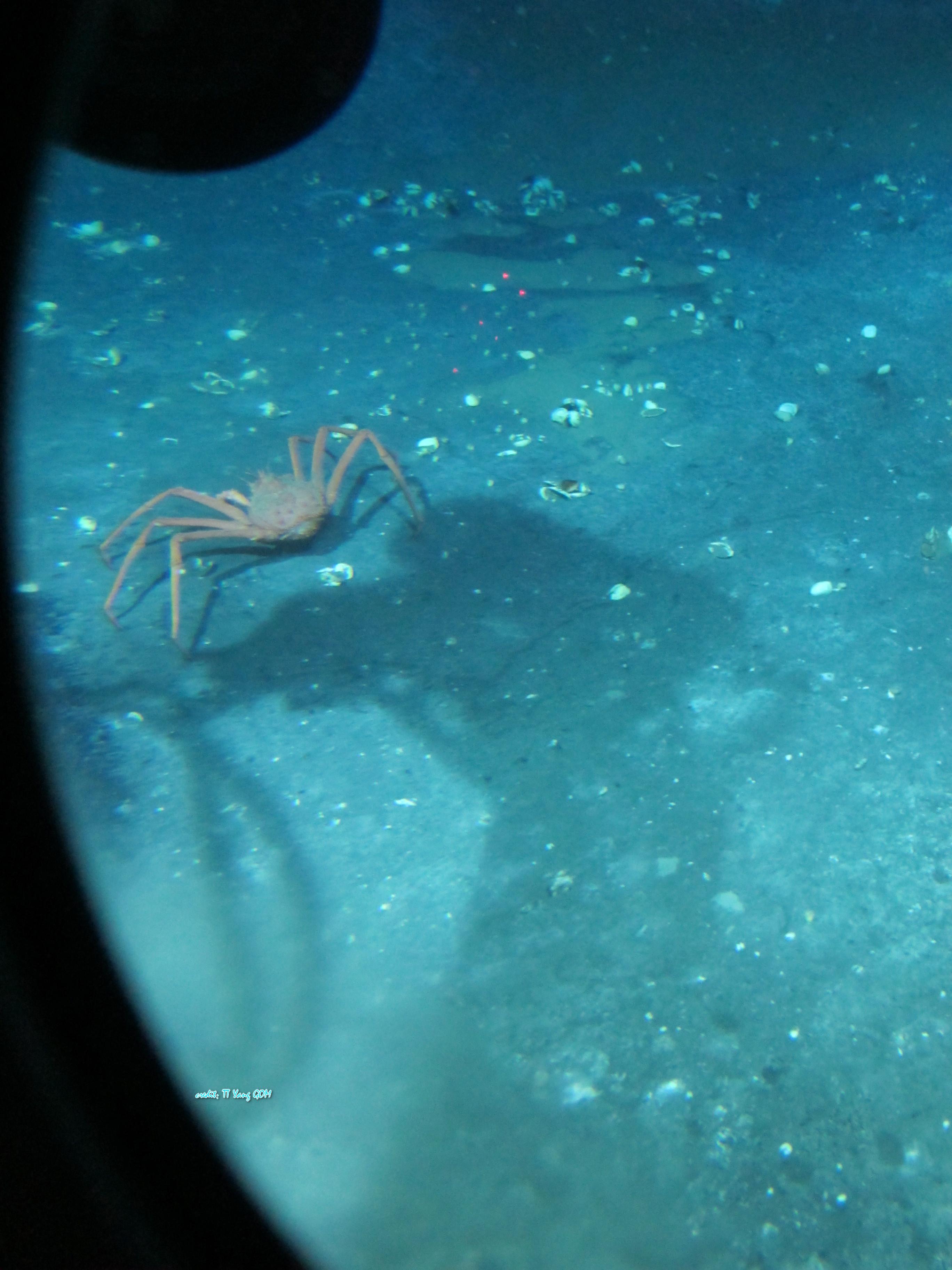 更好玩的是,我们所在的处所是个brine seep,也就是海底的盐湖,因为盐分比四周海水高四倍摆布,能明显看到seep的鸿沟。如许就很奇异的在海底看到“小溪”,“河流”“盐湖”什么的!