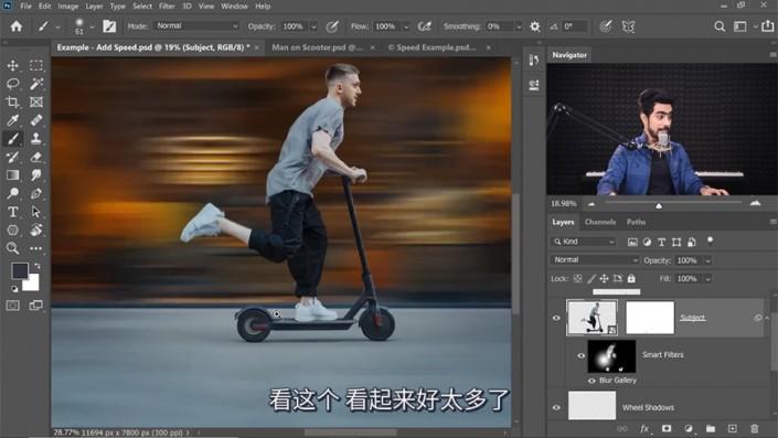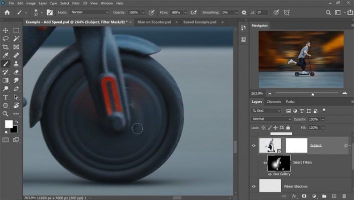 7、给主体添加蒙版,用画笔涂抹蒙版使车轮更天然。