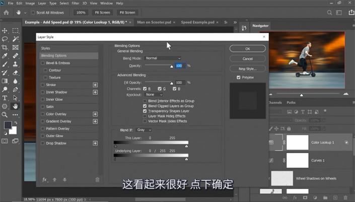 13、添加曲线、颜色查找等调整图层,调整混合选项。