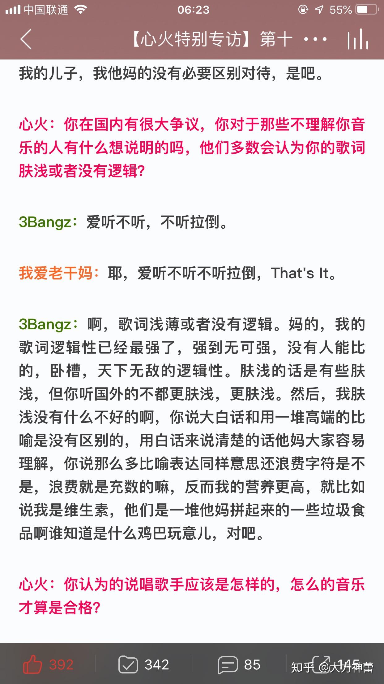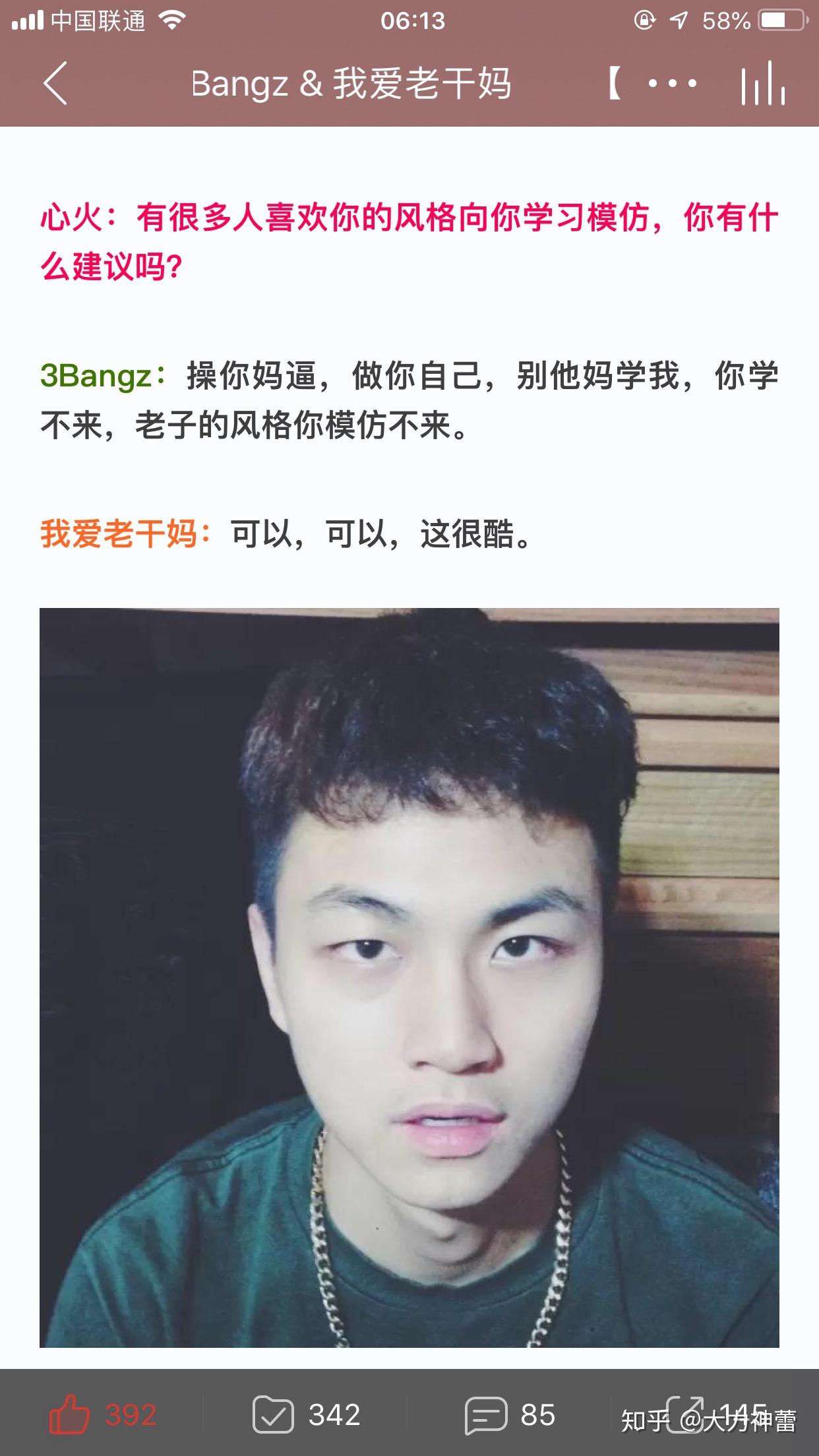 除了他的机智心爱加沙雕,喜好他的另一个原因就是3bangz能够说是非常real了(从上面的微博回复也能看出来……),算是说唱圈里,其实无论哪个圈,“实在”都是很珍贵的一种品量。
