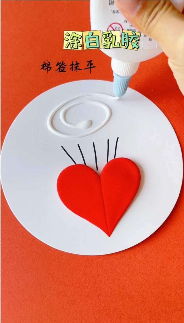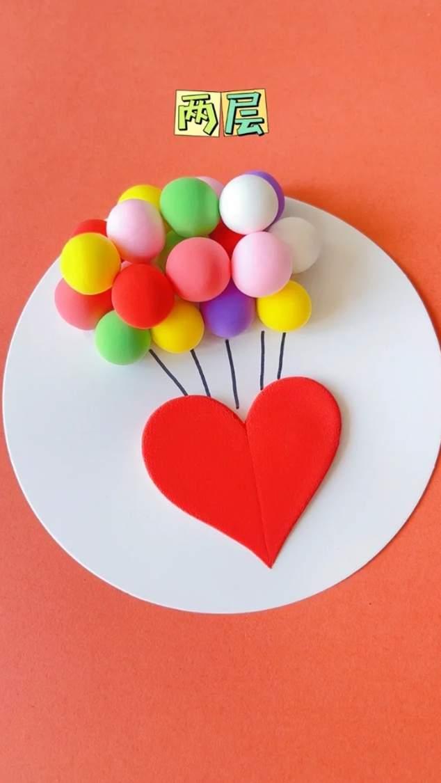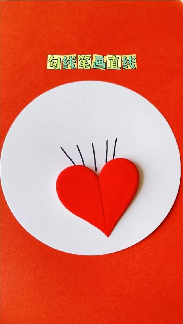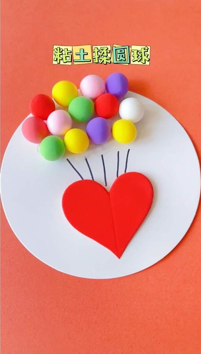 3、用勾线笔或签字笔在黏土红心上画出气球的线,也能够用黑色黏土造做。