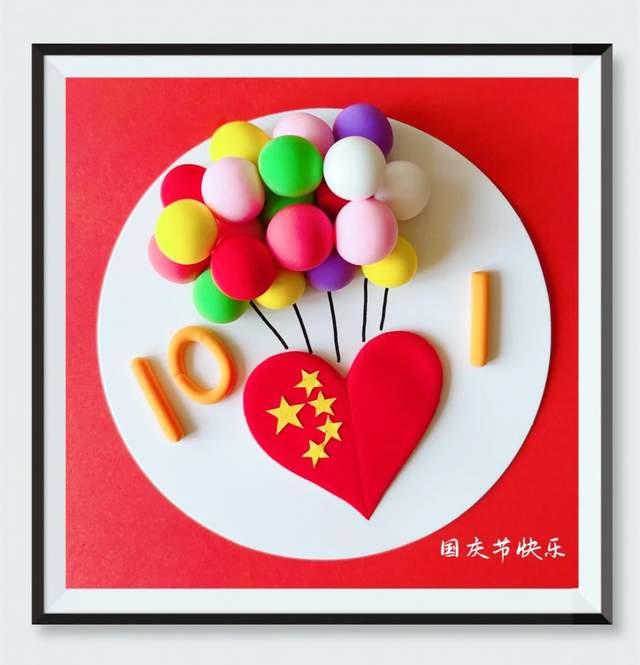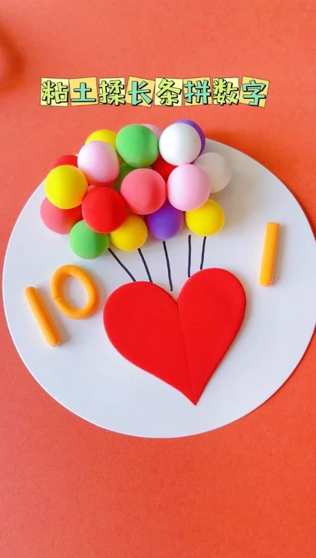 6、然后用橙黄色黏土捏出10、1的字样,粘贴在红心两边,接着用黄色纸裁剪出五角星,粘贴在红心上,就能够啦~