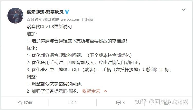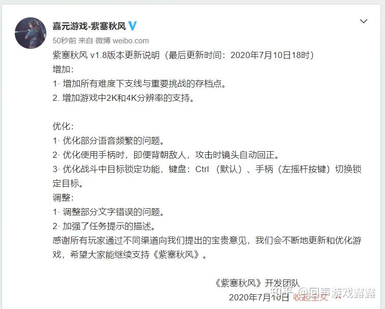 《紫塞秋风》官方已对游戏停止了版本更新,文章里和评论区提到的几个比力核心的问题已经处理。
