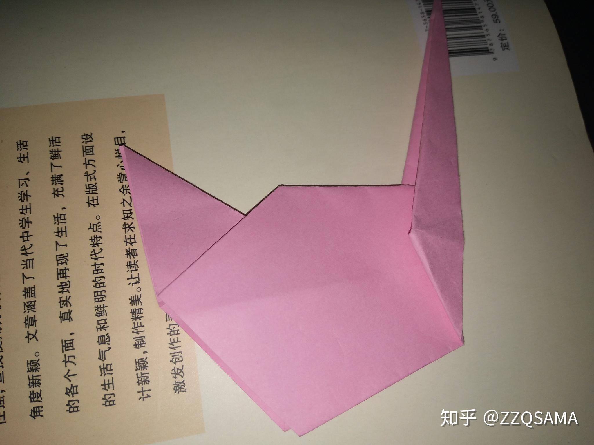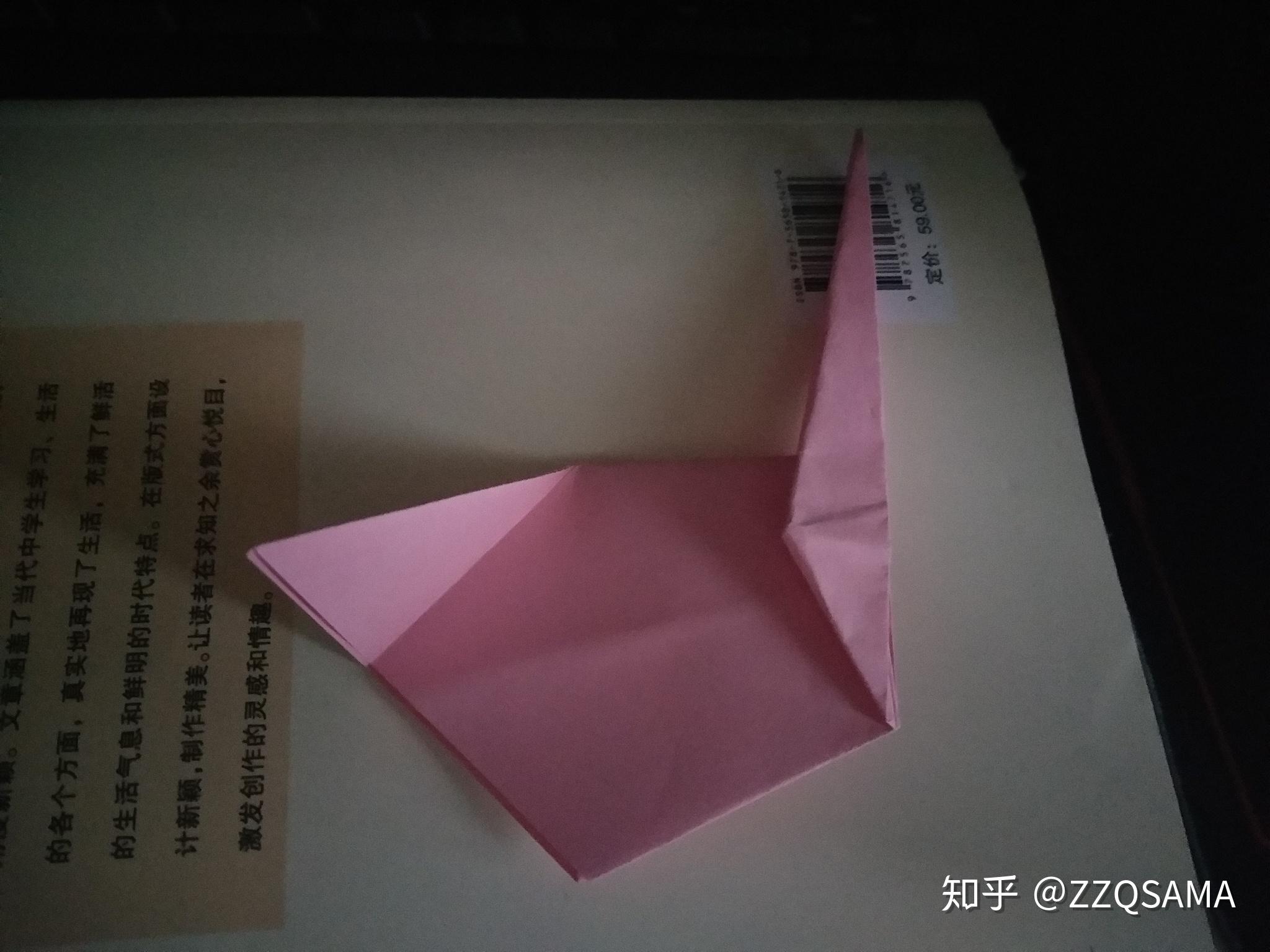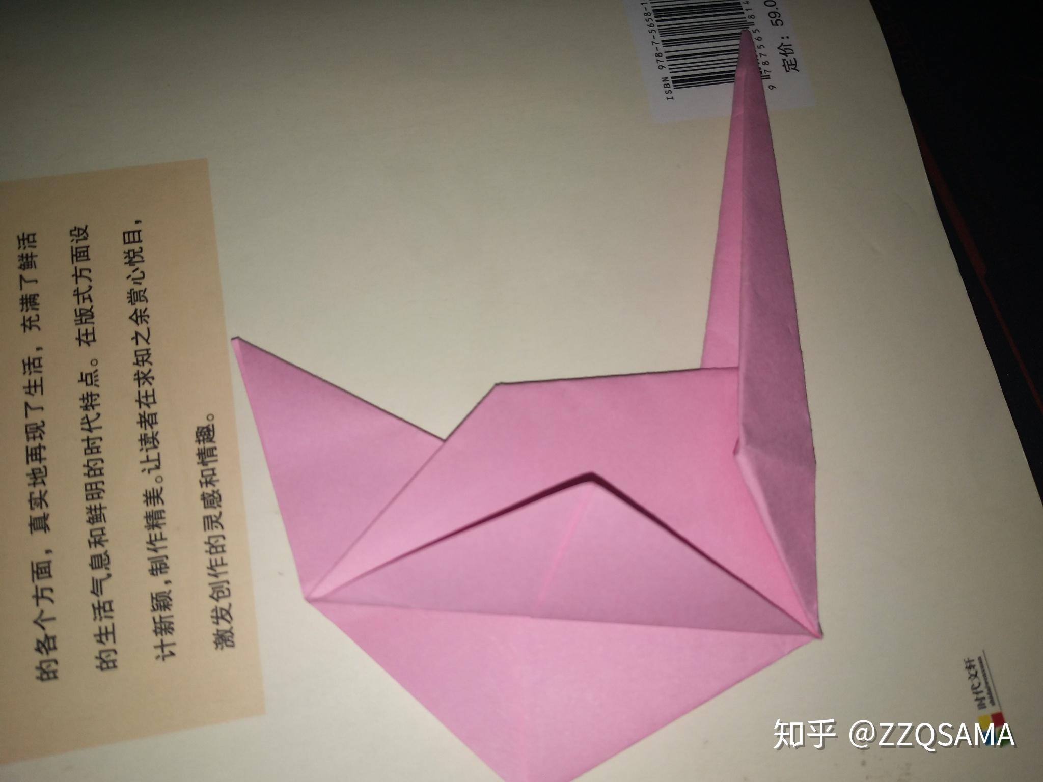 第十一步的最末形态呢,把头部竖起来第十二步,看图,操纵折痕,让颈部天然而然折出来。