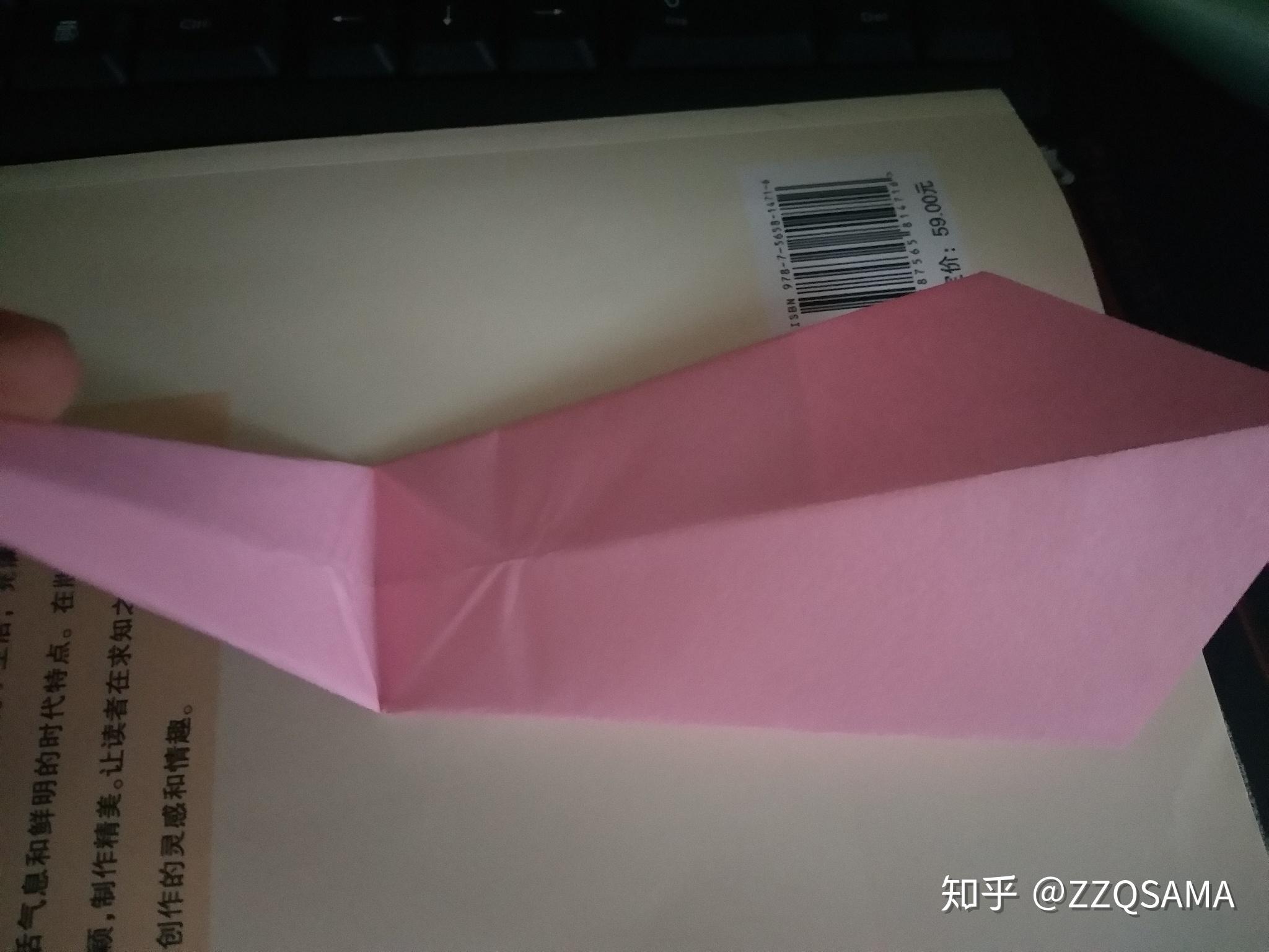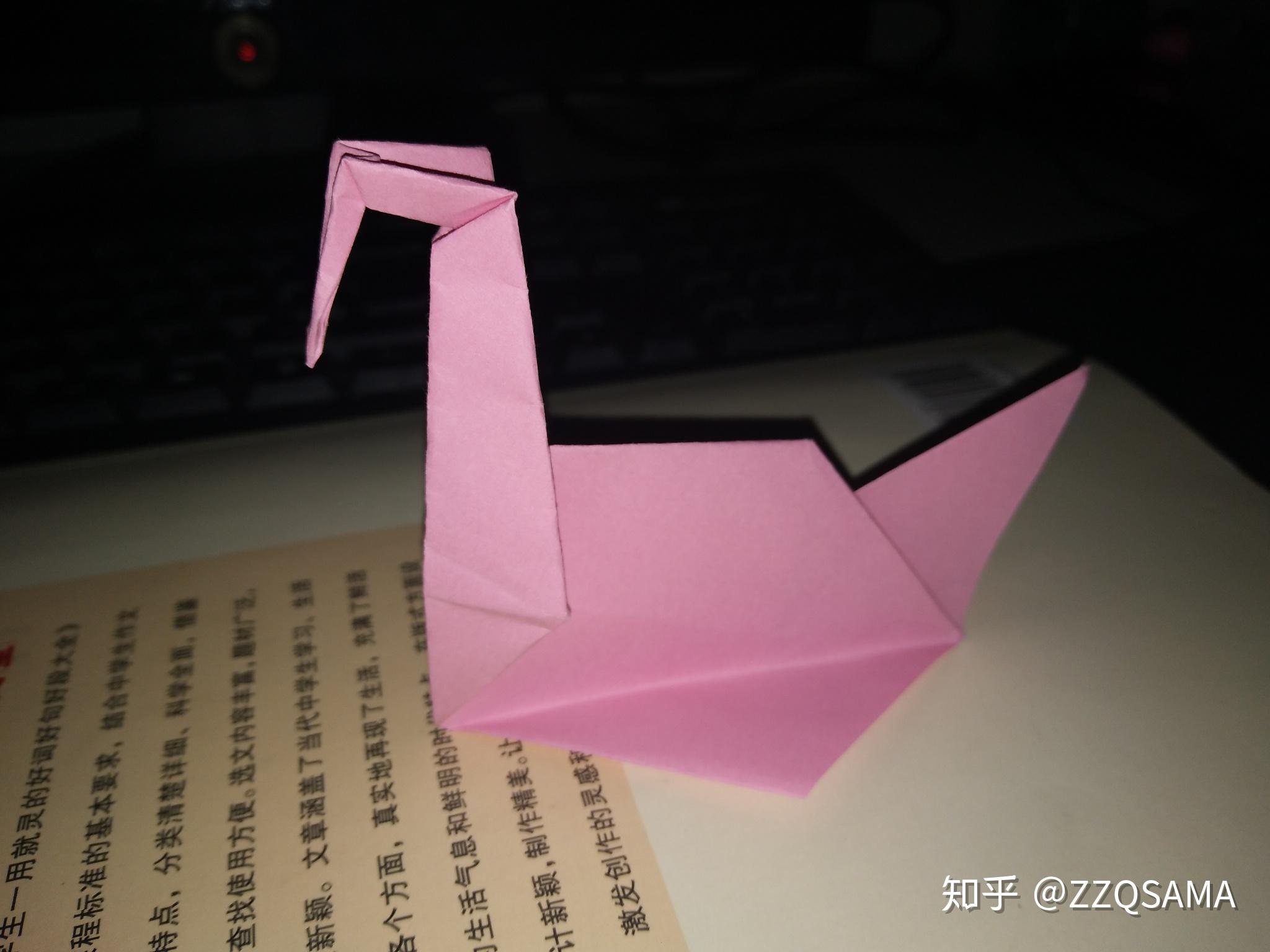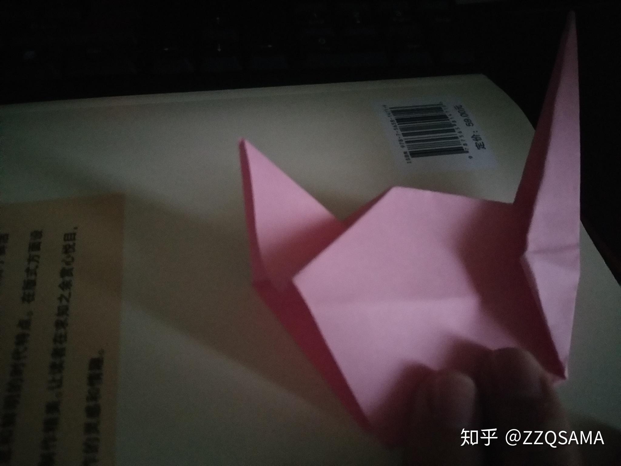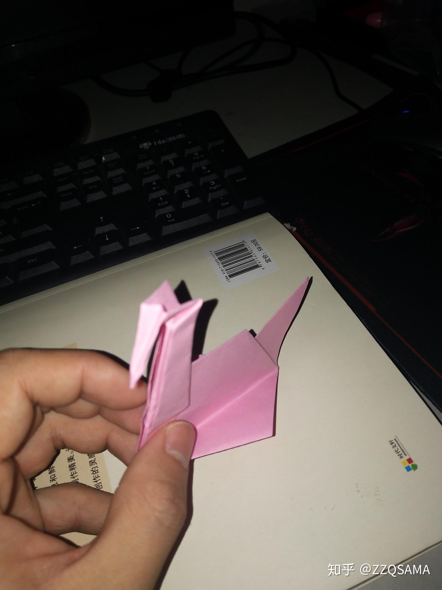 第十一步的最末形态呢,把头部竖起来第十二步,看图,操纵折痕,让颈部天然而然折出来。