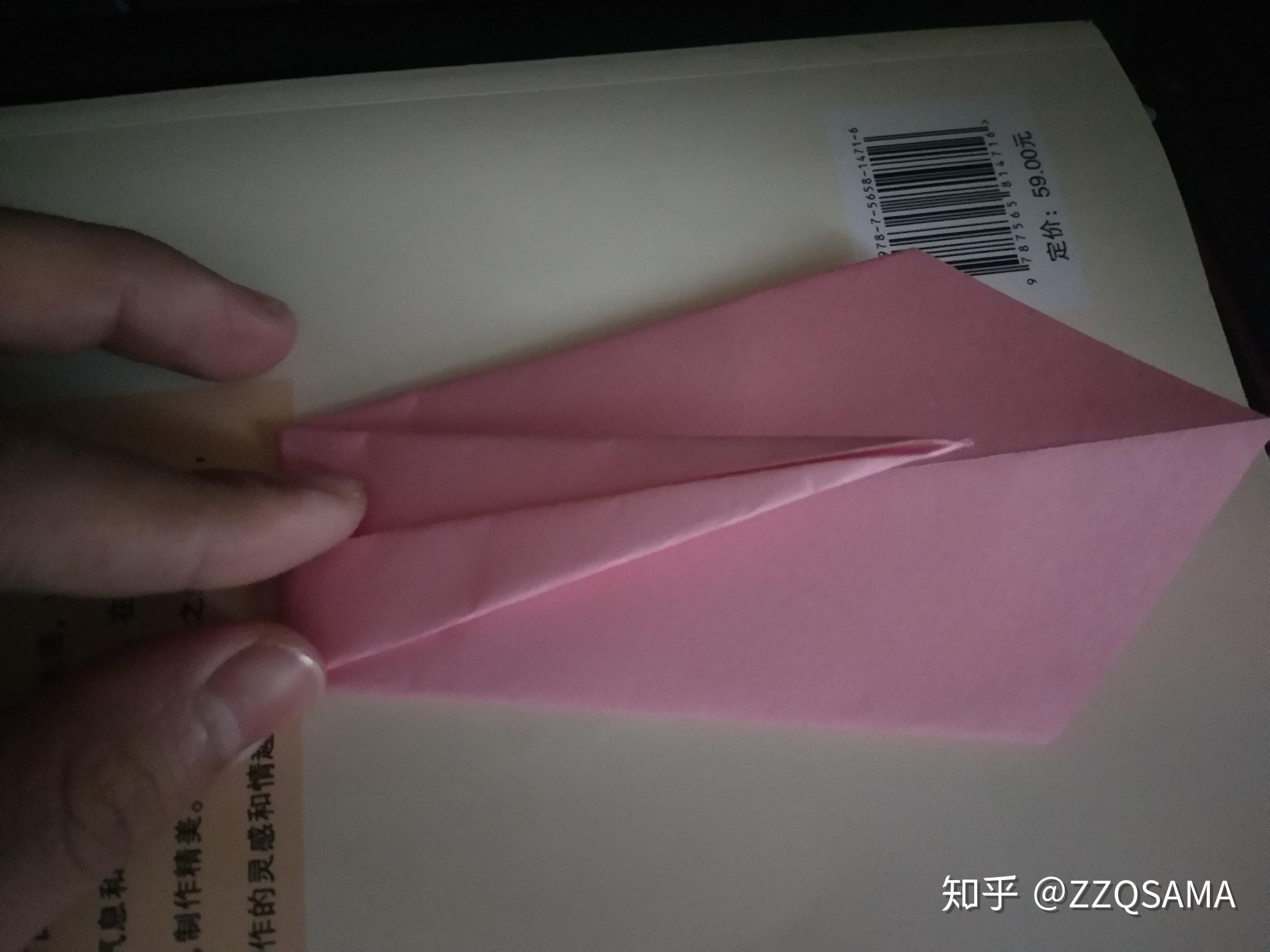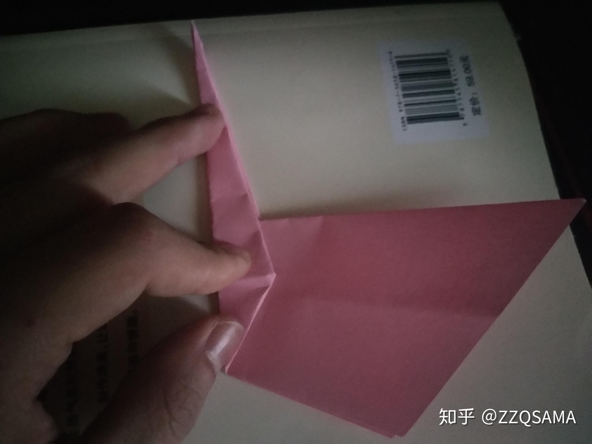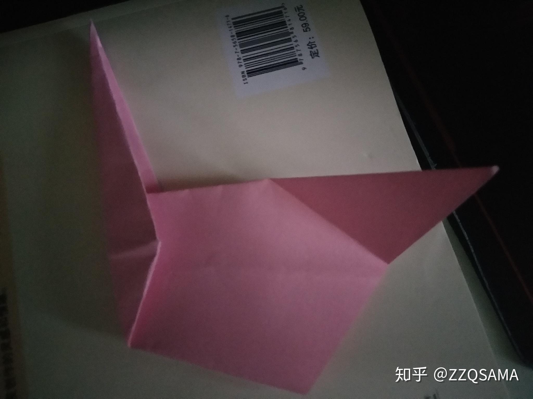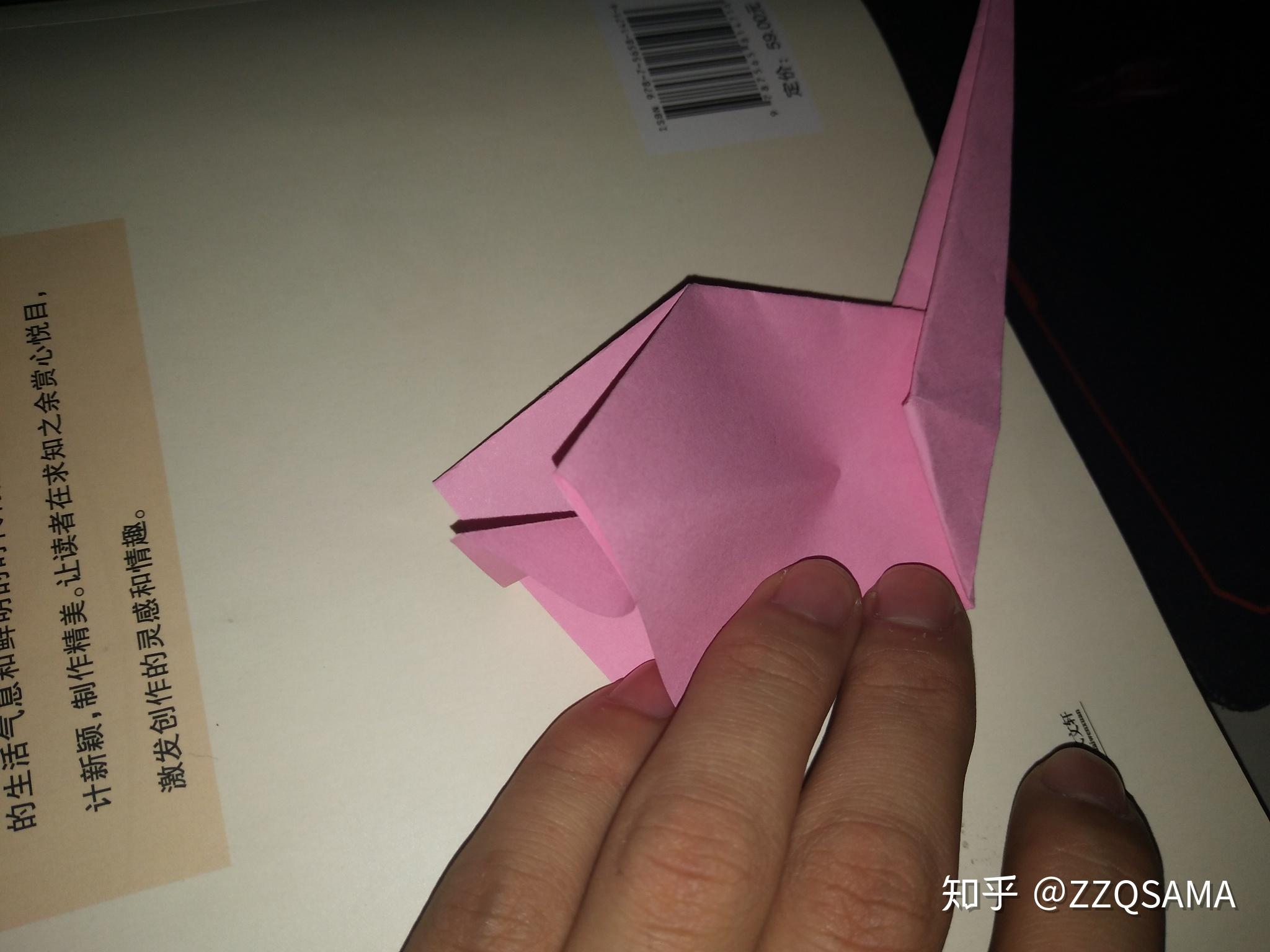 那一步就翻了个个儿。。第十一步,看图,沿着口字形折痕的菱形对角,把头部折过来。