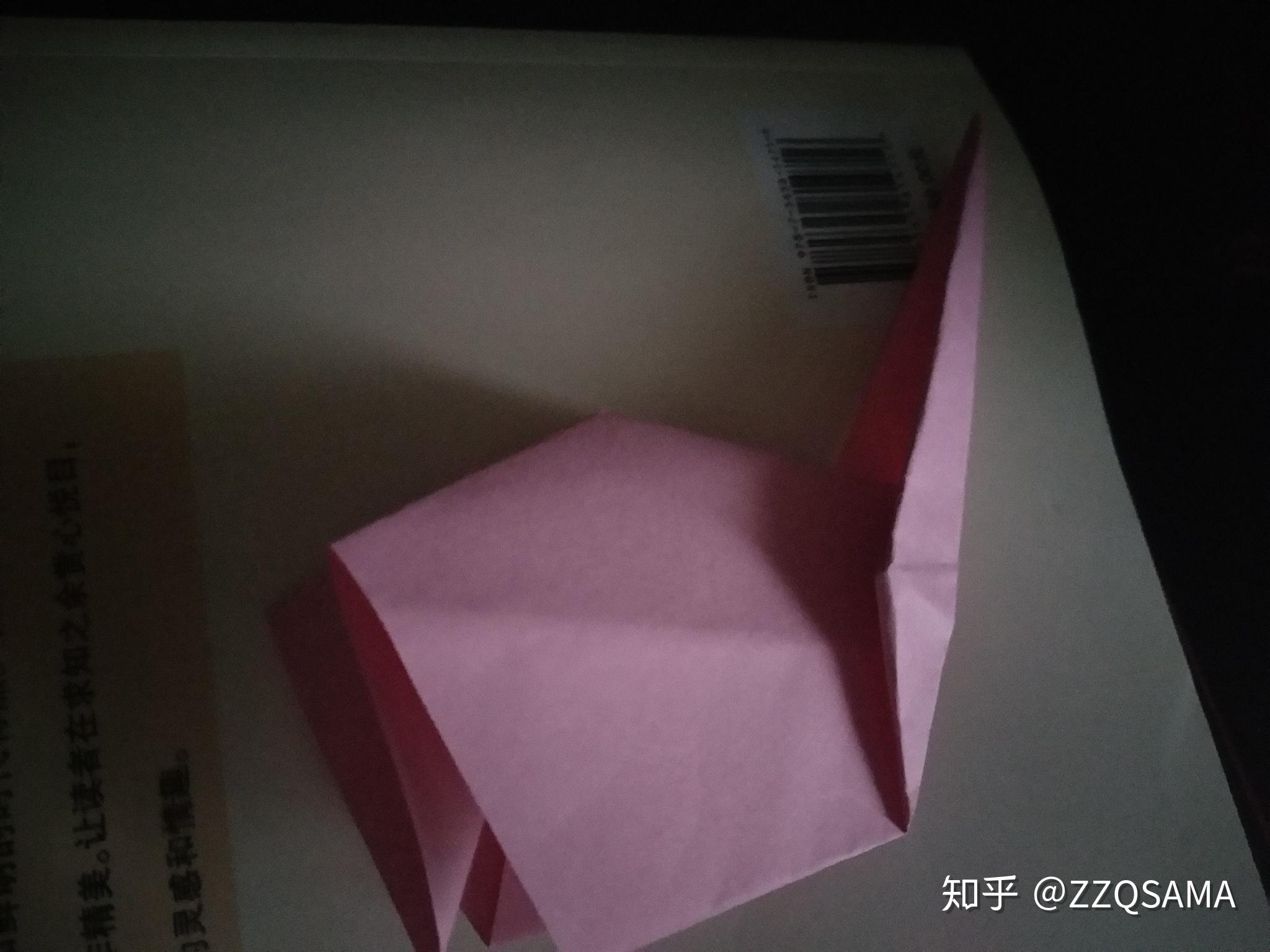 我上折一下。。第九步最初的形态。第十步,翻过来,翻个个儿。看到了吗,后面的折痕的纹路。