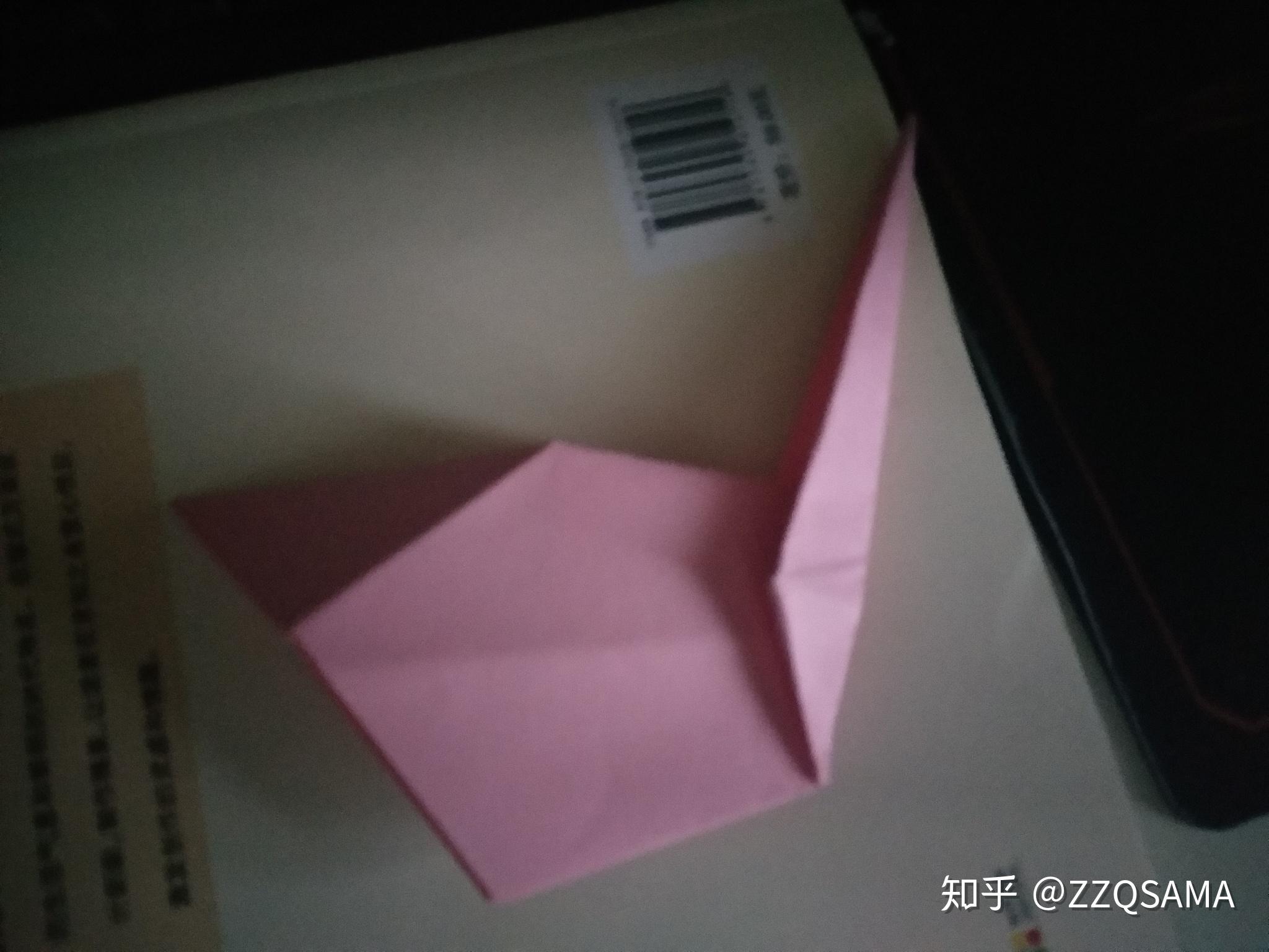 对角半数,搞一条折痕出来第三步,看图,把两边缘着折痕向里折,就像叠飞机一样的那种。