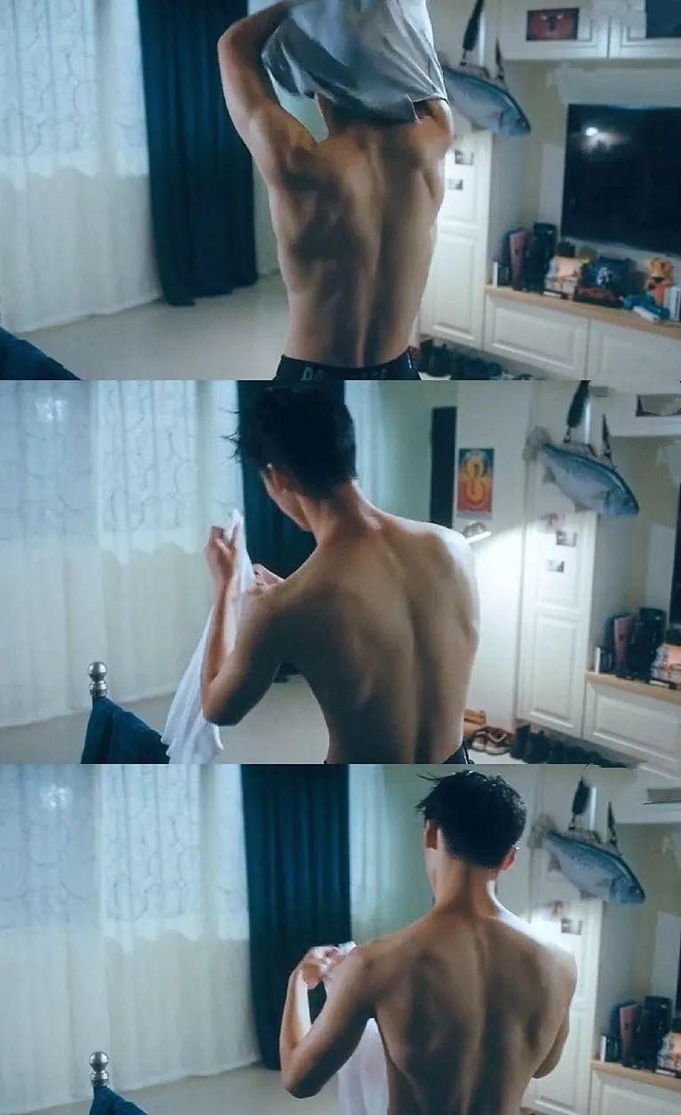 脱下衣服后宽厚的背肌,紧实发光,让人完全挪不开眼,哪个女生看了不心肌堵塞。