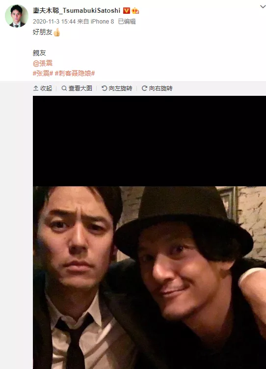 共演的张震和他也成为了圈中老友,开微博后存眷的第一小我也是张震。