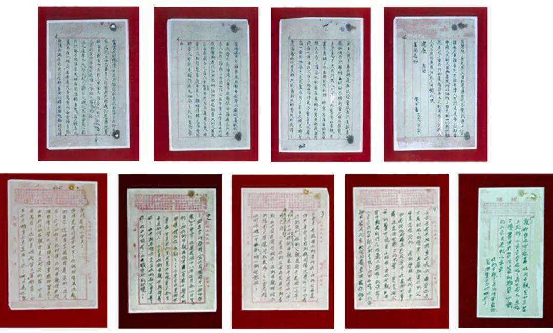 材料图片:那是陈觉烈士遗书(上排)和赵云霄烈士遗书(下排)。