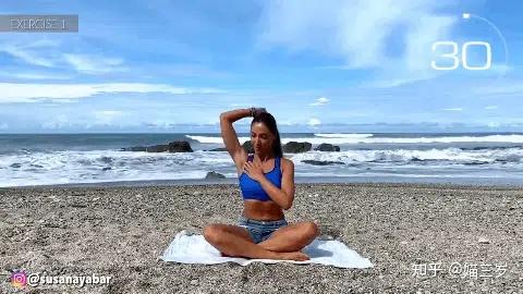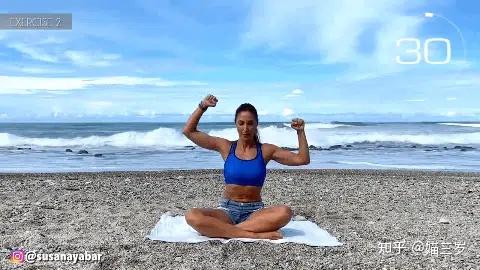 跪姿伏趴在空中上,双手合十向前方延伸,渐渐侧身抬起一边,摆布瓜代拉伸,对峙30秒。