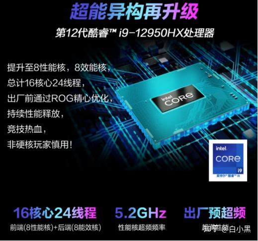 处置器晋级为秀肌肉的12代酷睿H55系列,16核24线程的i9-12950HX,8个性能核+8个能效核,超频频次可达5.2Ghz,CPU 65W+GPU 150W,整机性能释放可达215W,合适对处置器性能要求高的硬核玩家;