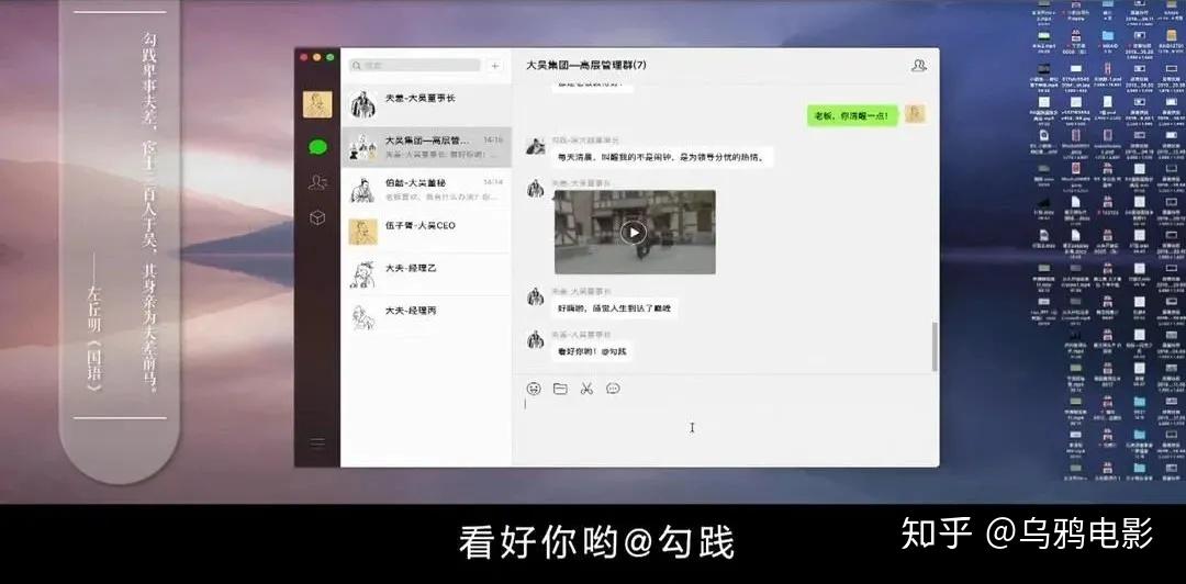 他们拉了一个微信群,叫做“吴国集团——高层办理群”,里边是夫差、勾践、伍子胥。卧薪尝胆的故事,被演绎成职场内斗大戏;