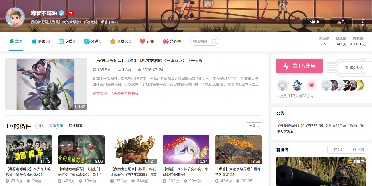 http://space.bilibili.com/145716/#!/index
