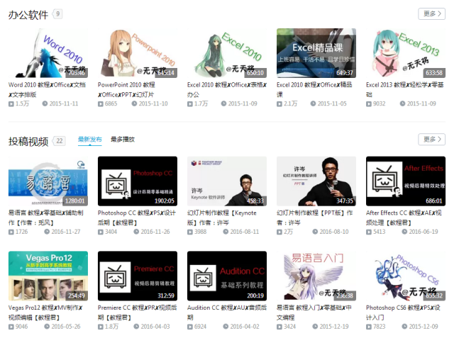office、PS、AE…教程良多,电脑软件技能进修不克不及不存眷的up主。