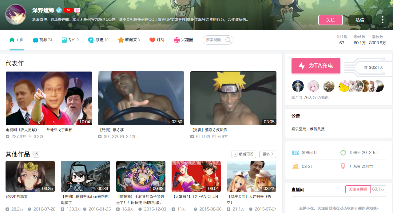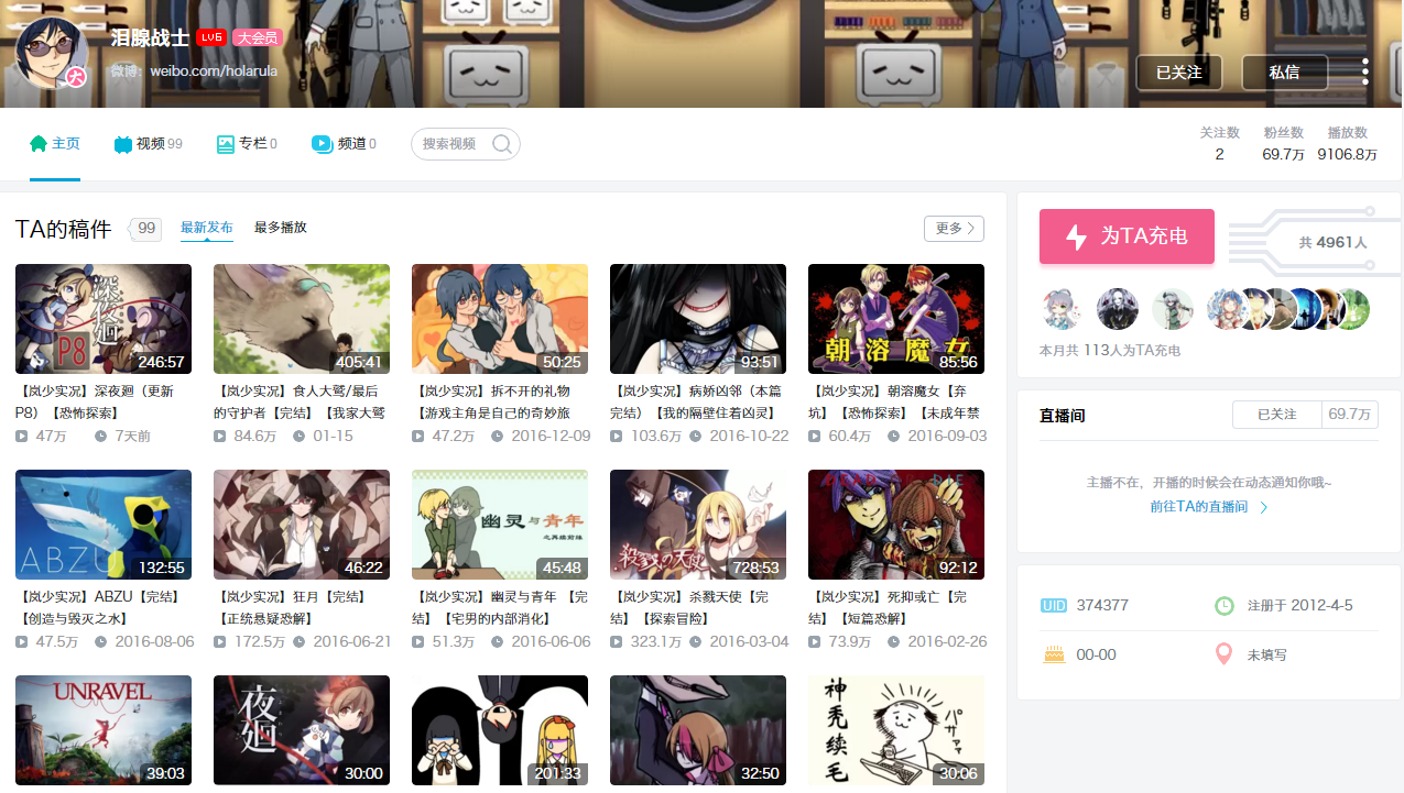 http://space.bilibili.com/865267#!/