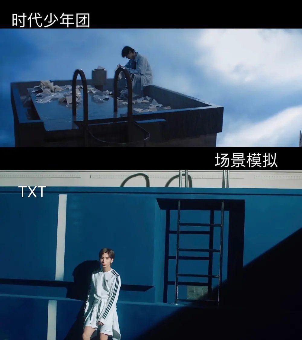 还有撕海报创意 MV镜头 舞台效果 别说什么元素不异很常见 撕海报角度大小等等选择良多变 巧了不是 就正好都是中轴线撕开 就正好人家变色你们变性 MV以及物料镜头 啊镜子 露台 烟花 书 好多好多元素类似很一般 太对了 但是你统一收MV类似那么多还一般呢?拍摄角度都一样了!画面构图都一样了!动做都几乎一样了 还一般呢?OK 你们拆瞎就好 舞台效果更不消说了跟BTS舞台阿谁类似嘞 就差脚印一模一样了 再说说舞台上的元素 EXO舞台上的钻石是组合标记 请问你们舞台上放个钻石代表什么?抄也要带脑子抄嘛 别啥也不看间接照搬 几个例子↓