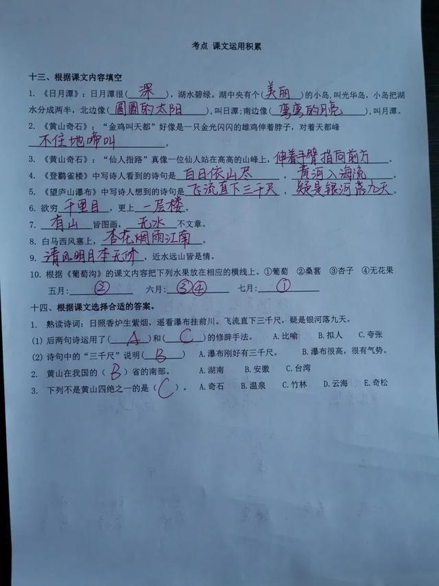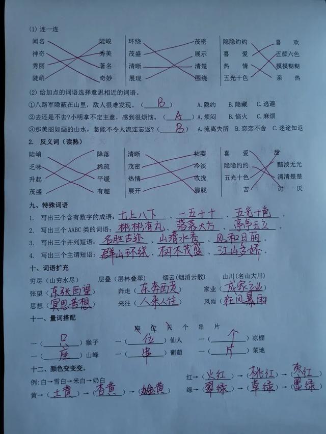 ①识字表:要求会拼音、会组词,更好掌握字的部首、构造与音序,能够做到看词语写拼音,涉及生字:楼、依、尽、欲、穷、层、瀑、布、炉、烟、遥、川、闻、名、景、区、S、部、秀、尤、其、仙、巨、位、都、著、形、状、谭、湾、湖、绕、茂、盛、围、胜、央、岛、纱、童、境、印、客、沟、产、份、枝、搭、谈、好、够、收、城、S、干、留、钉、利、分、味、昌、铺、调、硬、卧、限、乘、售