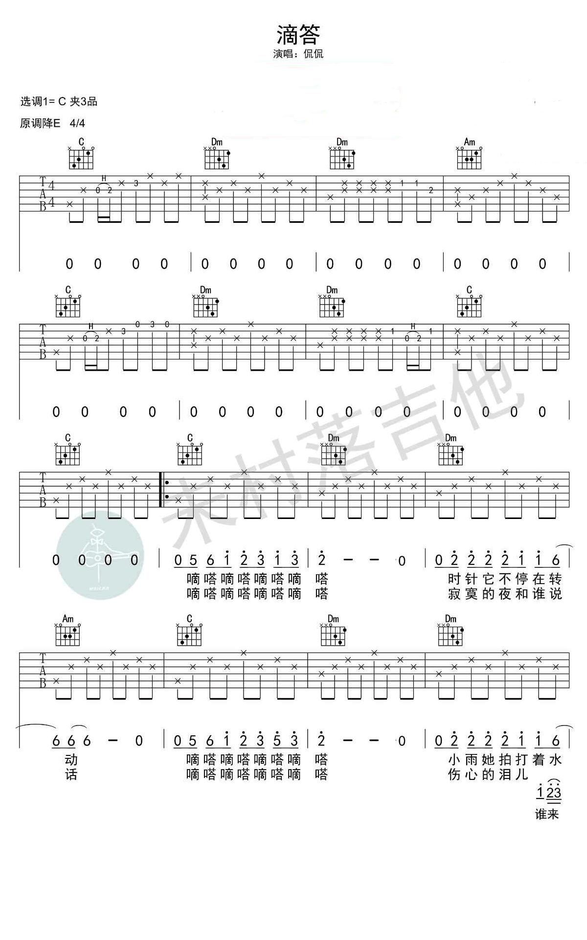 七、C调歌曲《滴答》弹唱操练