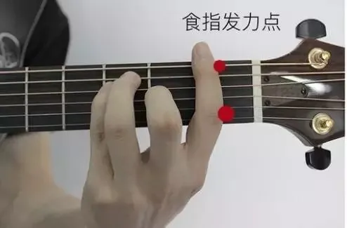 认真察看食指上的压痕:食指指尖处按六弦,而食指最初一个指节处负责压住一、二弦。