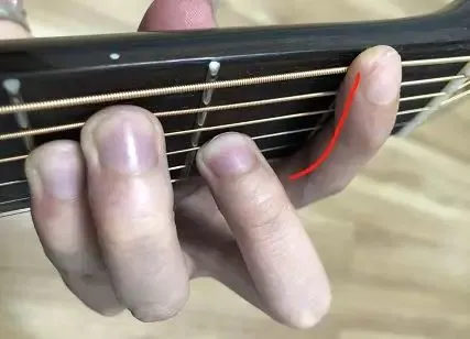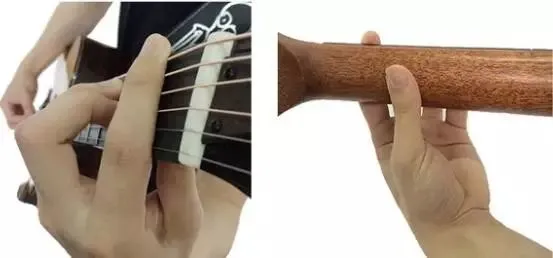 按弦的时候要避开食指关节处凸起的部门来按弦,尽量利用食指的指面靠外侧的部位来按弦。