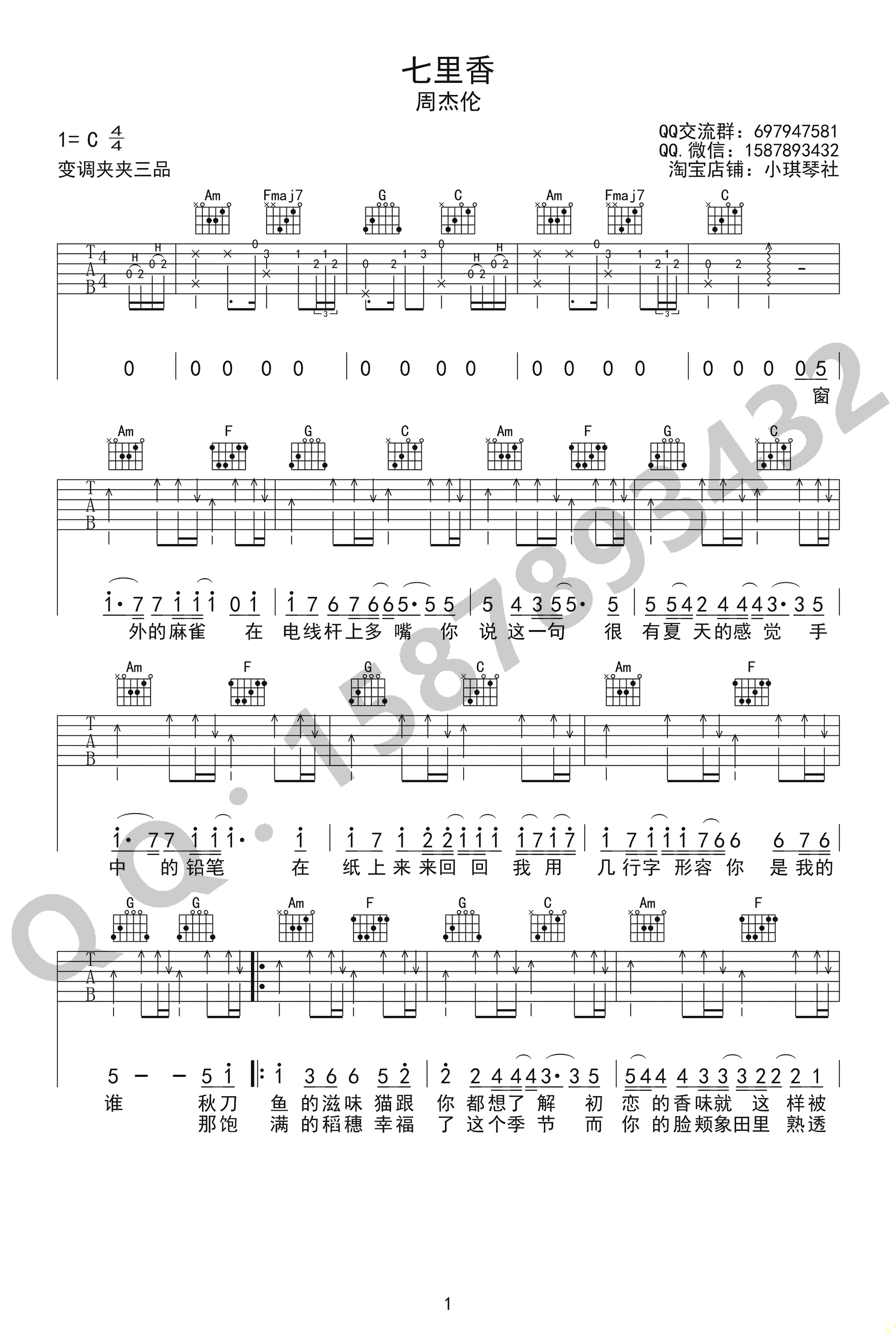 十、《七里香》弹唱扫弦操练