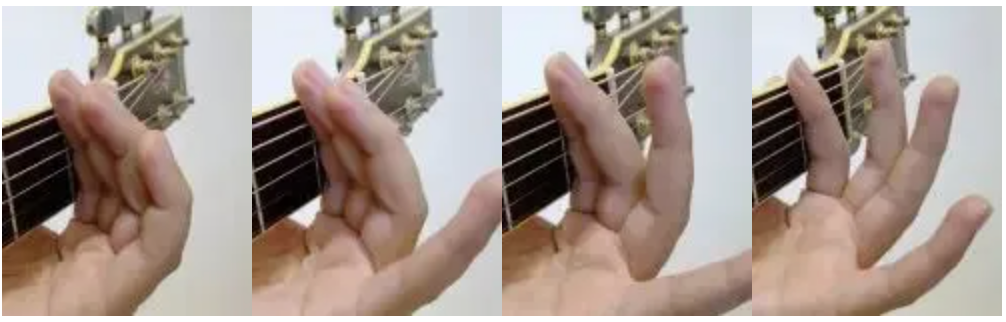 手指全按、铺开小指、铺开无名指与小指剩下食指压弦