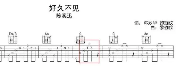 勾弦:也是常用技巧,在曲谱上标识表记标帜为一个圆圈里面写一个P。