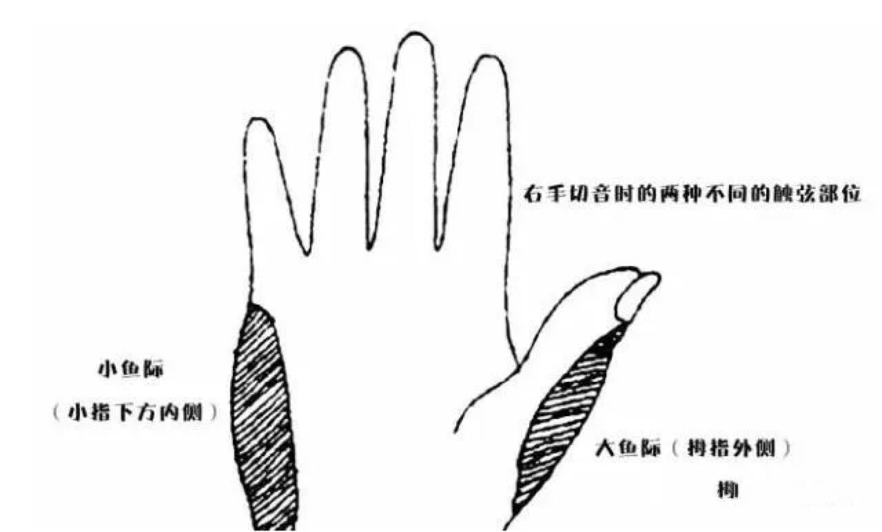 琴腰下面的弧度,放在右侧大腿上;琴背板上侧弧度,靠在胸口;琴身大圆部门上侧弧度,把右臂肘关节悄悄放在上面。*到达 “三点支持” 能够让我们十分不变的把吉他放在本身的身上(2)右手的拨弦办法