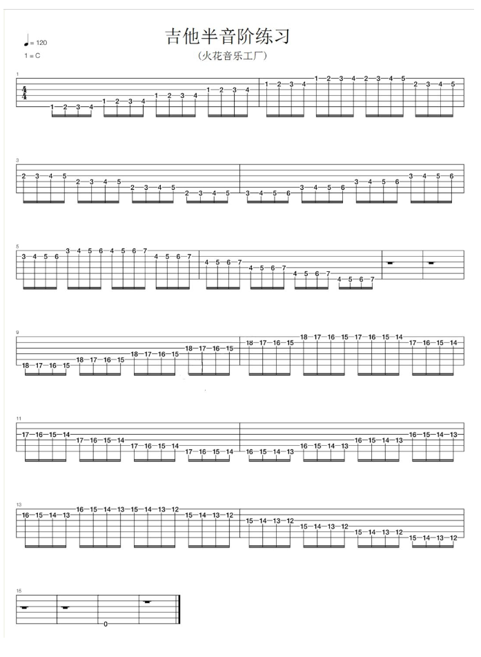 进修吉他,十个手指的协调才能是很重要的,通过操练半音阶,能够使我们看到谱表时,摆布手同时做出敏捷反响,各就列位、彼此协调去完成一个配合的吹奏目的。