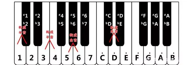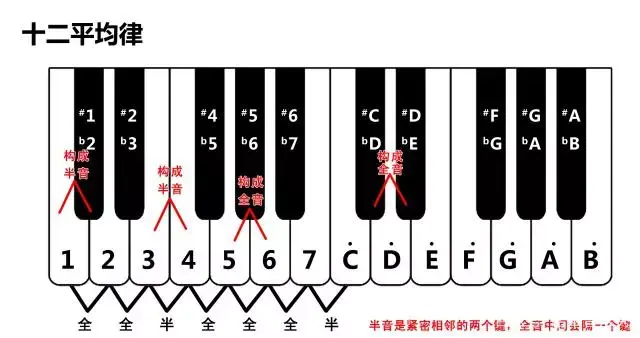 总而言之:相连的两个琴键构成半音,相隔一个琴键构成一个全音。是不是很简单?