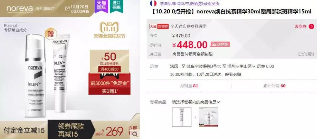 noreva是法国的药妆品牌,我本年618时买过她家那瓶很火的iklen+焕白抗衰精华,里面有个成分很牛:Rucinol,是pola专有的美白成分,目前医学界公认的强效美白成分之一,价格却比pola廉价良多。