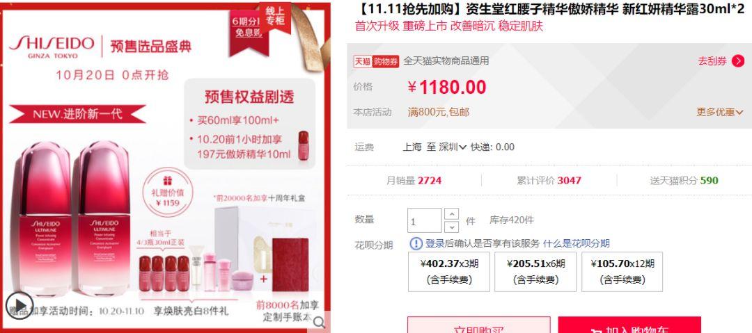 资生堂红腰子是我之前不断在囤的精华,比来想换些此外用。不外想买的妹子能够动手,虽说资生堂家活动仿佛一年不如一年(……),但是1180买100ml仍是能够的。更何况还如今没有算上满减劵。