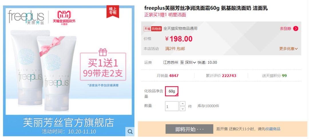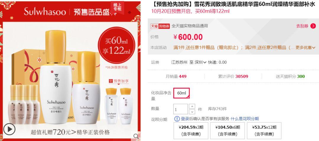 现实上你如果能拍到前18000,还会送你2收7.5ml的精华和定造礼盒,总共117.5ml。