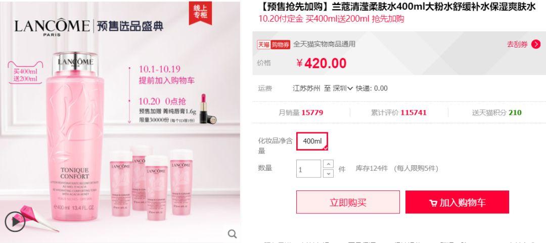 粉水此次活动是420元买600ml,简单了然,没有那些七七八八的动做,就看你需不需要了。