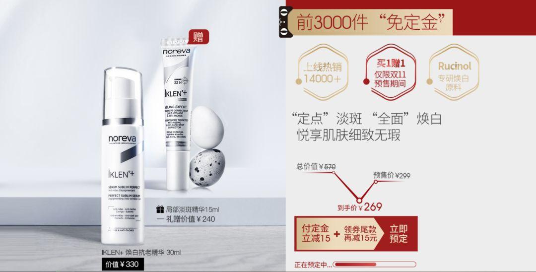 它的预售价是299元,到时候付定金和尾款,领劵后269能到手,还送一管15ml的部分淡斑精华,需要祛黄美白抗氧化成效的妹子能够蹲一下。