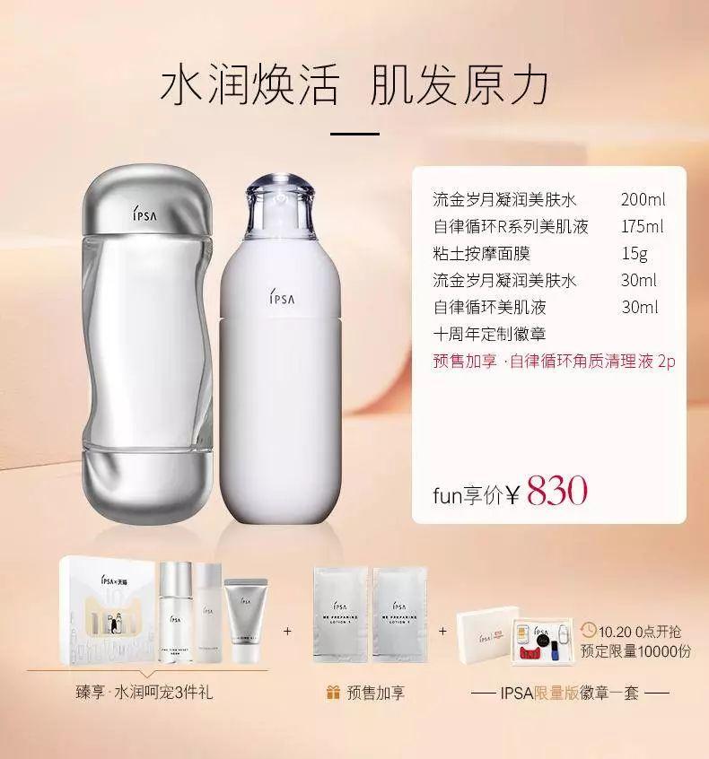 IPSA那套水乳,我本年大部门时间都是靠那套组合渡过的,流金水没什么觉得,不外它的乳液几乎巨好用!我回购过好几次了!!