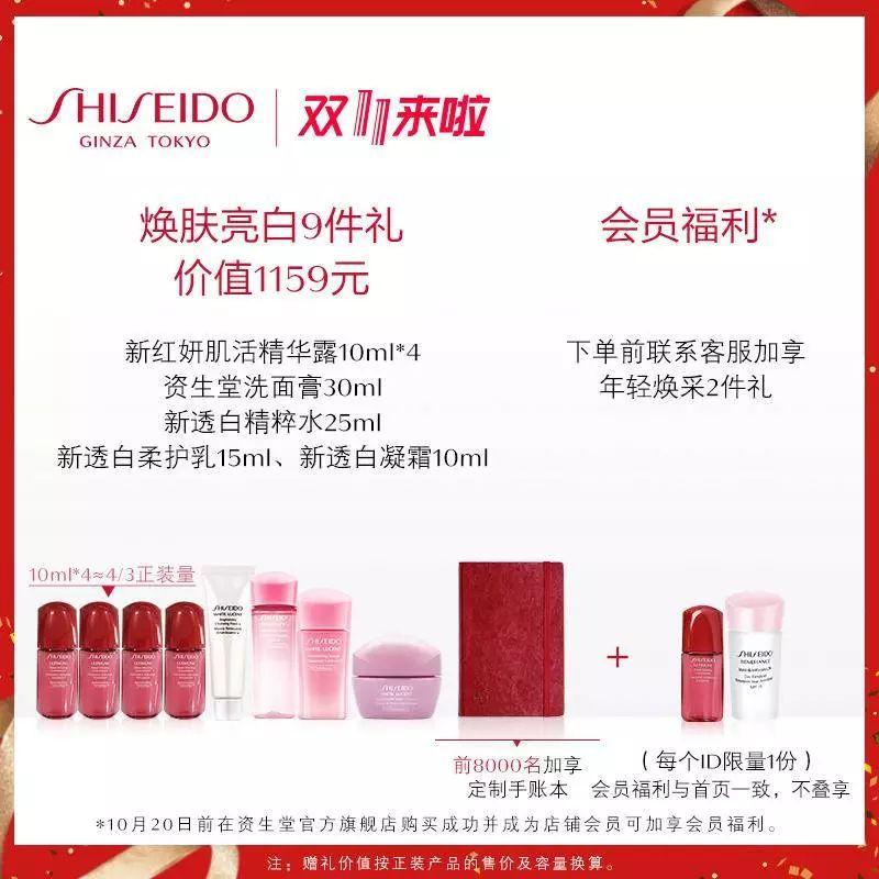 别的还会送你一套新透白系列的水乳霜小样套拆以及一收30ml的洗面奶。前8000名送定造手账本(没什么用);你如果会员的话,还能得到一份礼品。