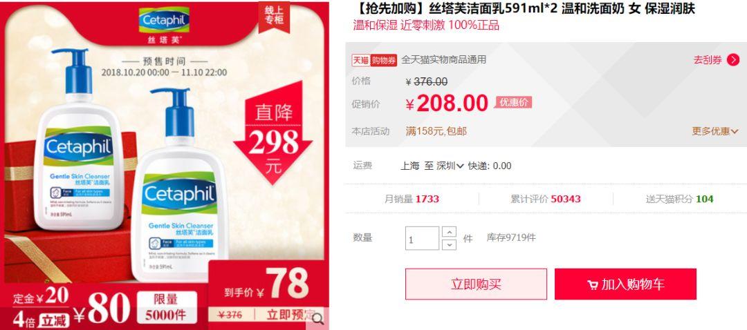 敏感肌必备的丝塔芙洁面,不含香料、色素、刺激性清洁成分,此次天猫活动仍是蛮值得买一下的,