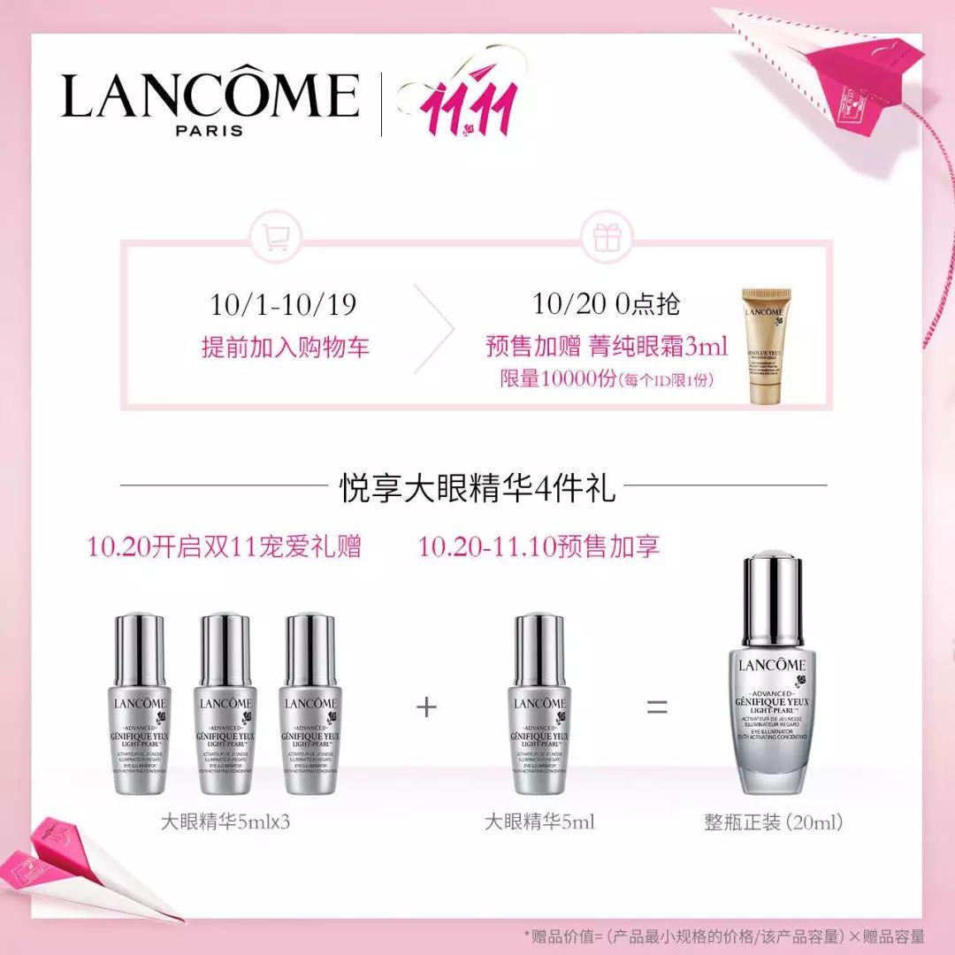 参与预售不只有4瓶5ml的小样送,还能获得3ml的菁纯眼霜。