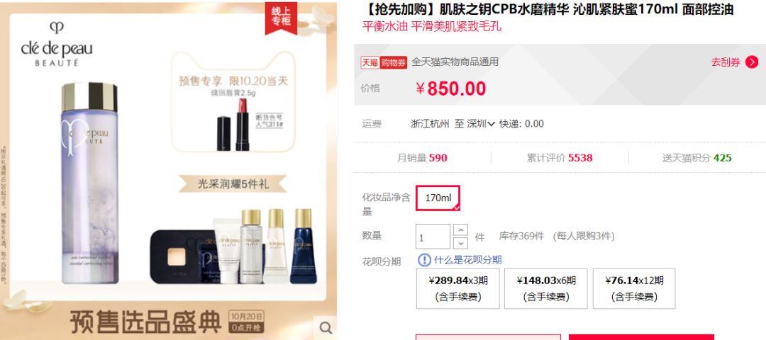 850元=170ml+荣耀润耀5件礼
