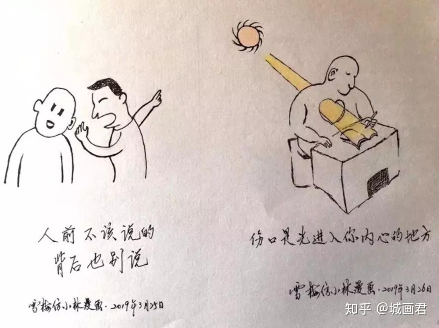 △小林教师的画备受好评“小林漫画”有着本身奇特的气概,寥寥几笔勾勒出场景、人物和人物关系,再配上简短的句子,画面简单,文字易懂,但最重要的是——都很有趣。