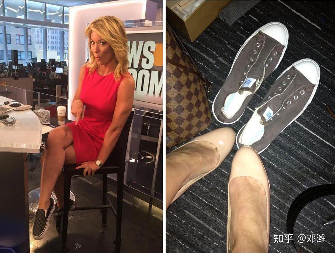 若是节目只需要露上半身的话,女主播们也会“偷懒”穿运动鞋上场,名嘴Brooke Baldwin不露腿的时候桌下都是运动鞋,或者是穿一备一、节目起头前再把高跟鞋换上。